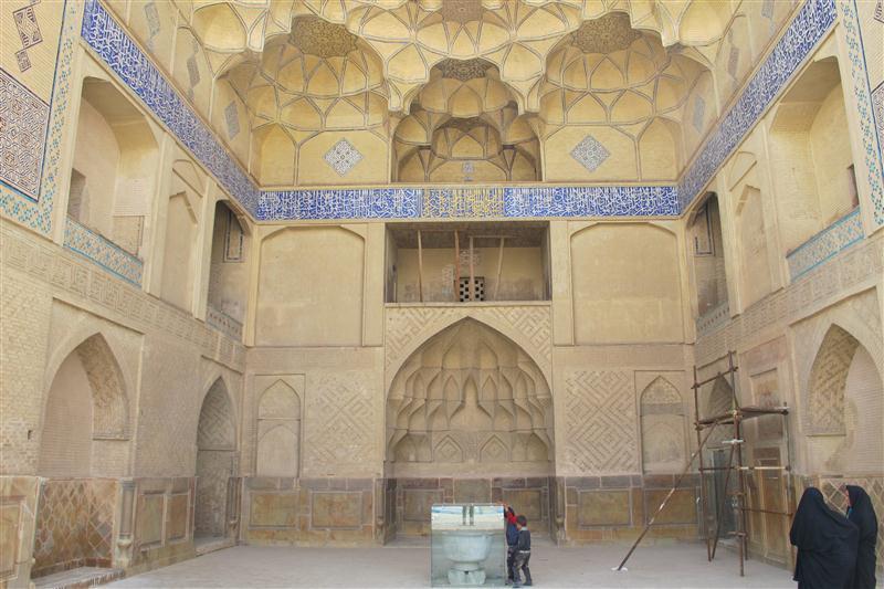 Avluda 4 adet eyvan bulunmakta ve her biri birbirinden farklı özellikler taşımakta. Bu dört eyvanda Moğollar, Safeviler, Selçuklular ve İran kendi tarzını yansıtmakta.