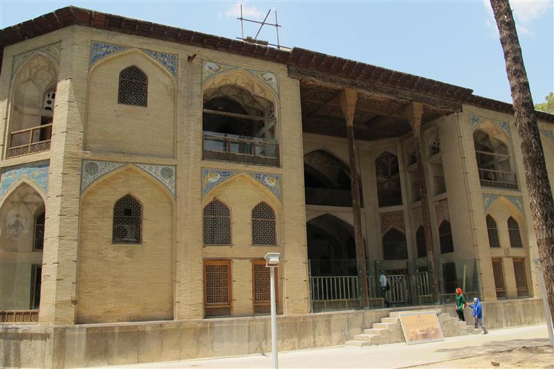 Bu saray 48 metre yükseklikte ve meydanda Şeyh Lütfullah Cami'nin hemen karşısında yer almakta. 6 kattan oluşan bu saray zamanında ihtişam ve lüksün bir göstergesiymiş. Şimdi harap vaziyette ve tadilatta. Duvarlarında yer alan mozaik ve duvar resimleri yağmalanmış.