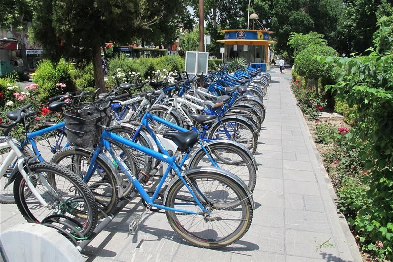 Bu yukarda gördüğünüz bisikletler bedava, turizm polisine pasaportunuzu gösterip, fotokopisini veriyorsunuz ve 6 saat süreyle bedava bisiklet kullanarak şehri turluyorsunuz.