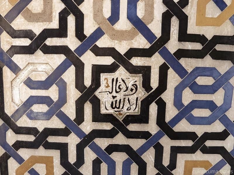 Onlar da biliyorlardı, yaşayıp sonra da oradan göçeceklerini. Tek Galip Allah’tır diye zikrederek gitmişler. Kuran’dan alınan ayetler ve Müslüman şairlerin mısralarının kazınmış olduğu bu kitabeler bazı duvarları tamamen kapladığından dolayı Allah’ı en çok zikreden saray olarak anılmakta. Kısacası Endülüslüler, İslam sanat ve estetiğinin zirveye ulaştığı ve aklın sınırlarını zorladığı El Hamra Sarayı’nın duvarlarını Kur’an-ı Kerim’de Yusuf suresinde bulunan “Allah’tan başka galip yoktur.” ibaresini işleyerek göstermişler. Bir tarafta la Alhambra kalesi ve dış duvarları öbür taraftala Alhambra bahçeleri ve tabi ki en sonunda halifenin evleri ve süs havuzları.
