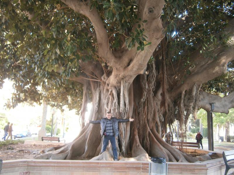 Deniz kenarında bir süre dinleniyoruz. Şehir yönüne döndüğümüzde karşımızda şehrin en güzel mimari yapısı, Casa Carbonell duruyor. Buradan başlayarak Explanada de Espana'da yani müthiş mozaiklerle renklendirilmiş yürüyüş yolunda ilerliyoruz. Yolun sonunda şehrin en ünlü parkında (Parque de Canalejas) bugüne kadar bizim gördüğümüz en büyük kauçuk ağacına hayran kalıyoruz.