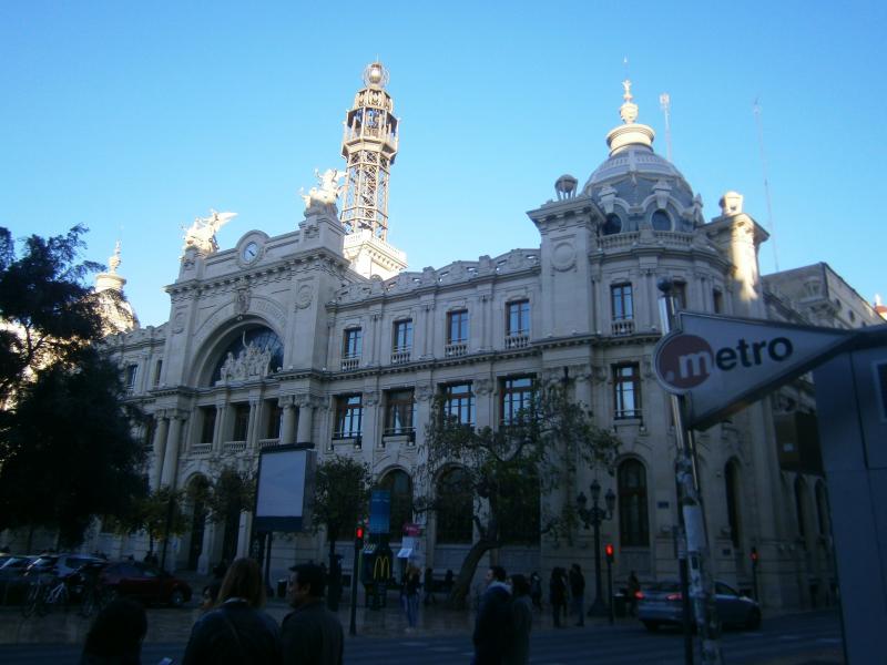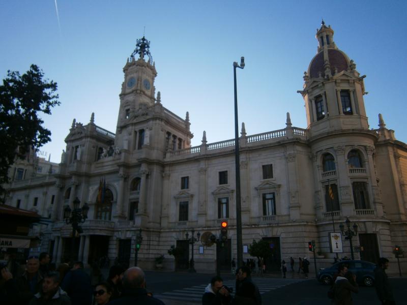 Tren istasyonunun karşısındaki caddeden geçtiğinizde kendinizi çok güzel ve büyük bir meydanda (Plaza del Ayuntamiento) bulacaksınız. Burada meydana da adını veren Valencia Belediye Binası (Ayuntamiento) ile karşısında çok gösterişli Posta Binası (Correos) bulunuyor. Meydan gündüz de gece de hep kalabalık. Binalar ve özellikle meydanda bulunan çeşme geceleri çok güzel aydınlatılıyor.