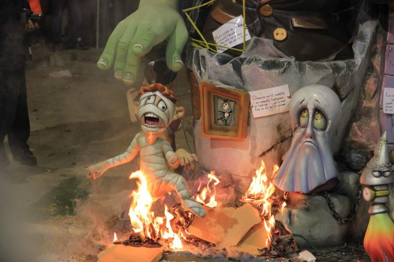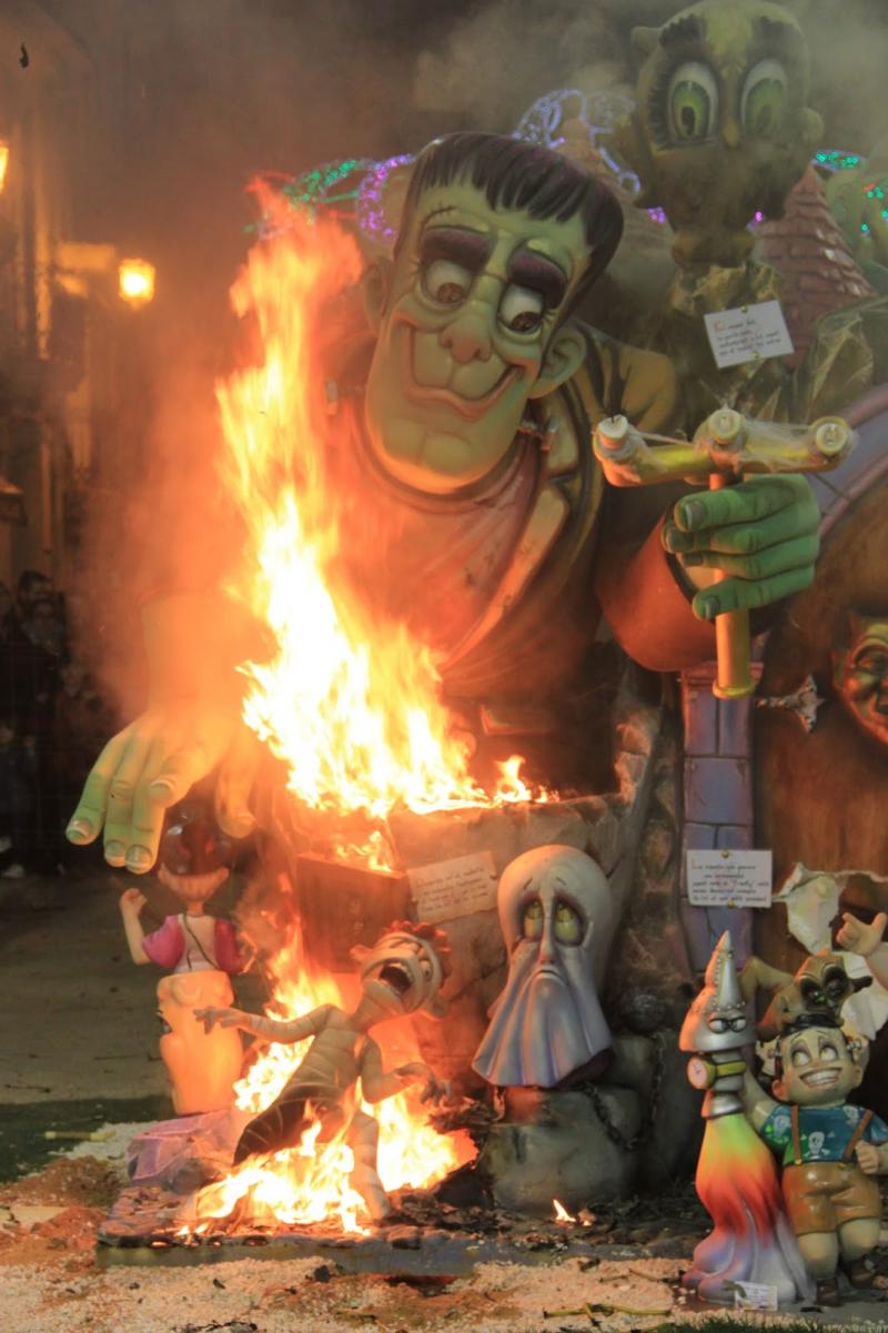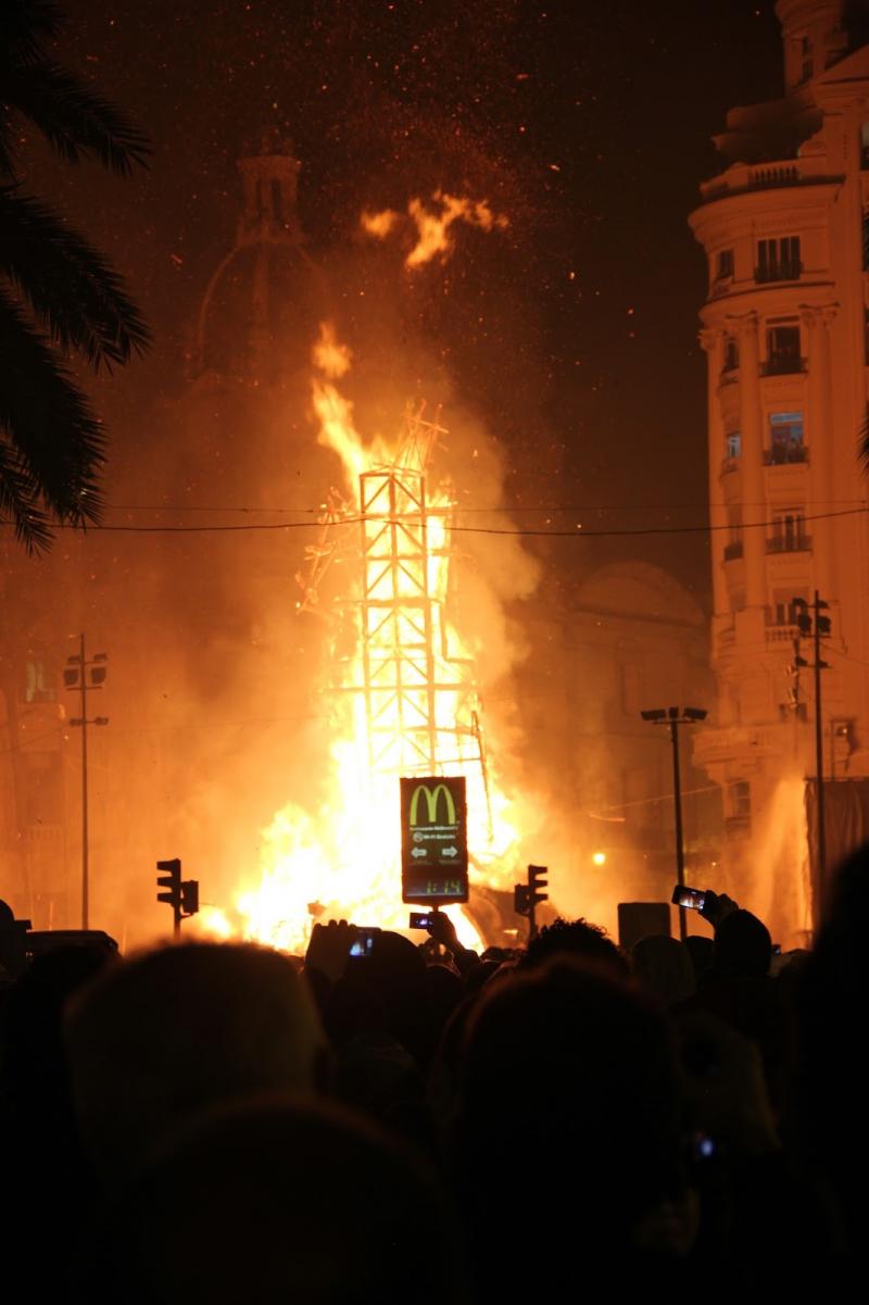 Fallera tarafından üstüne benzin dökülüp uzunca bir fitil yardımıyla ateşleniyor. Zaman zaman 4-5 katlı bina boyutuna çıkan dev alevler, itfaiyeler tarafından kontrol altına alınıyor. Yakındaki evler nasıl temizleniyor merak konusu :)