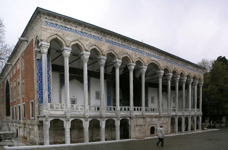 Topkapı Sarayı Müzesi külliyesine dahil, İstanbul Arkeoloji Müzeleri avlusunda yer alan Çinili Köşk, Topkapı Sarayı’ndan da önce, 1472 yılında Fatih Sultan Mehmet tarafından yaptırılmıştır. Köşk, haç biçiminde tonozlarla çevrili bir orta kubbe ile köşelerde yer alan diğer kubbeli odalardan ibarettir. Giriş ekseni üzerindeki beş köşeli oda, dışarı doğru çıkıntı yapar. Köşkün giriş yönünde on dört sütuna oturan bir eyvanı vardır. Bu cephe mozaik çinilerle kaplanmıştır. Yan cephelerde şerit halinde uzanan çini dekoru göz alıcıdır. Arka cepheler sırlı tuğla işçiliğindedir.