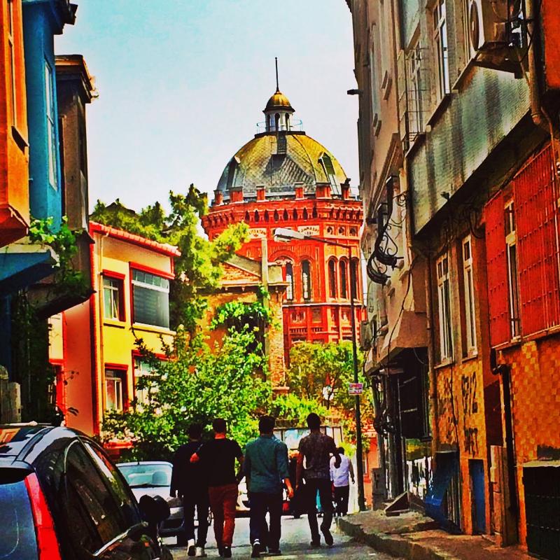 Okul bir tepenin üzerinde bütün zarafeti ve heybetiyle yükseliyordu. Heybet ve zarafet çok sık bir araya gelmeyen iki kelimedir aslında. Heybet genelde berberinde çirkinliği getirir çünkü. Gücün zorbalığı getirdiği gibi. Ama işte karşımda mavi göğü delercesine uzanan bu kan kırmızı bina bütün zarafeti ve görkemi ile Balat semasını süslüyordu. Koskoca kırmızı bir kale gibiydi. Her bir noktası ayrı ayrı işlenmiş bir sanat eseriydi.