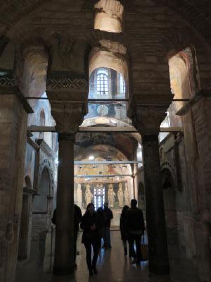 Müzenin girişinde biletlerimizi ve kulaklıklarımızı alarak tarihi yolculuğa dalıyoruz. Tam 10 yıl önce gelmiştim. Seneler nasıl akıp gidiyor. Şu anda restorasyon yapıldığı için çok fazla yer gezemiyoruz. İlk giriş renk renk mozaiklerle bezenmiş, zengin bir tarihi içeriyor. Yaklaşık bir saat tek tek mozak süslemelerin anlattığı hikayeyi dinliyoruz. Küçük bir mekan koskaca bir dini hikayeyi barındırıyor. İçeride mozaik süslemeyle beraber 14.yüzyıla ait en güzel fresko örnekleri de burada yer alıyor.