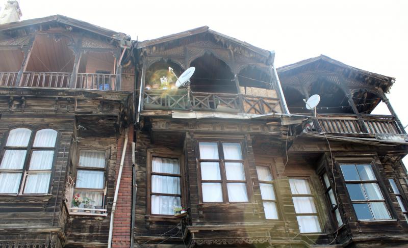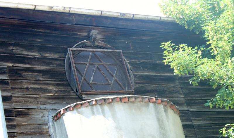 Sinagogun karşısında üç adet ahşap bina var, bakımsızlıkları dikkat çekiyor. Cumbalarının altındaki "Davut Yıldızı" bu evlerde, zamanında üç yahudi kardeşin oturduğunun bir kanıtıymış.