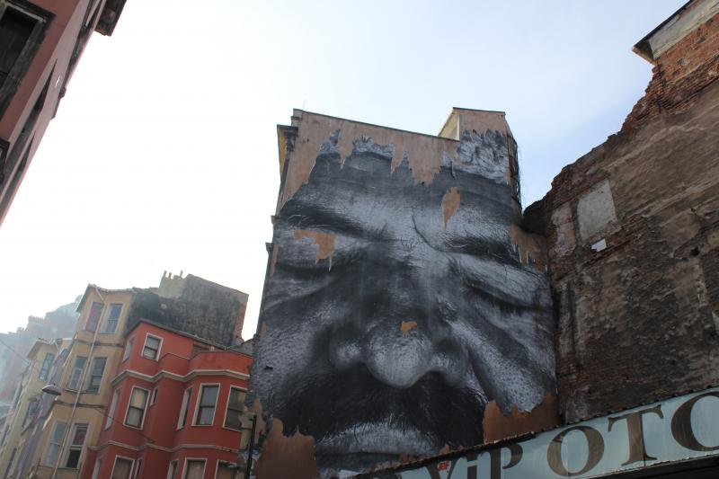 Kilise ve Patrikhane ziyaretlerimiz bittiğine gore artık Fener'in ara sokaklarına grime vaktidir. Stevi Stefan Kilisesi'nin karşısındaki sokaktan içeri girdiğimizde bizi ünlü sokak ressamı JR'ın çizdiği duvar resmi bizi karşılıyor.