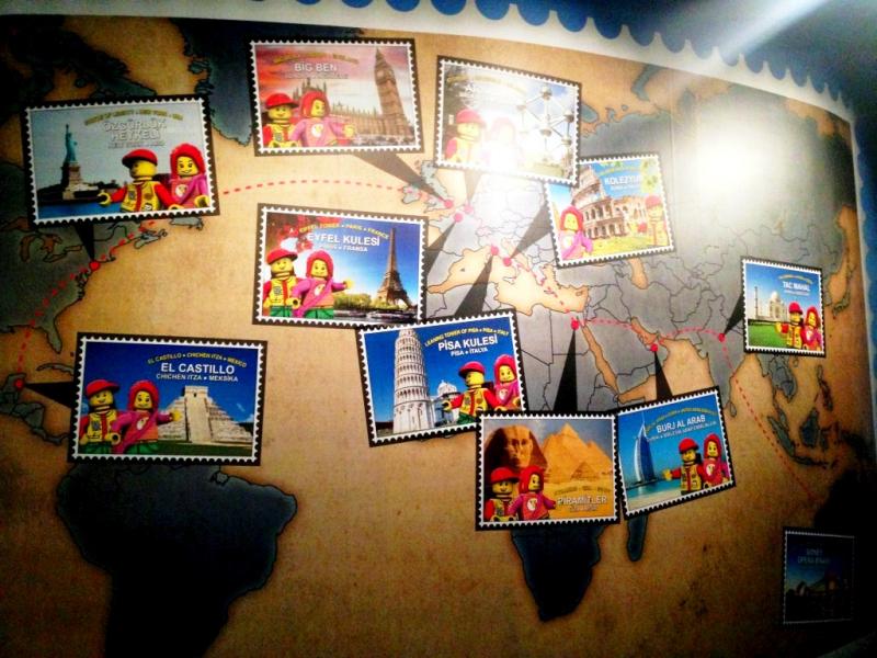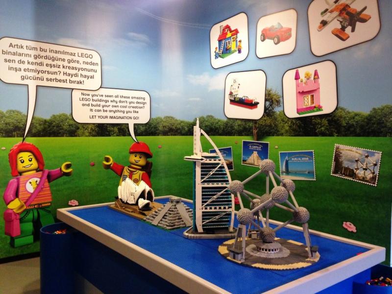 Benim favori bölümüm gayet doğal olarak İstanbul ve dünyanın çeşitli yerlerine ait sembol yapıların Lego’dan yapılmış maketleri idi. Üstelik bu bölümde çocuklara hangi sembolün hangi ülkede, harita üzerinde tam olarak nerede yer aldığı da çok sempatik bir dil ile anlatılmış. Her Lego maketinin önünde ise 3 şıktan oluşan bir soru var. Mesela “Karşında gördüğün Kolezyum maketinin yapımı için kaç saat harcanmıştır?”. Bu gibi sorular ile çocukları, gezerken aynı zamanda düşünmeye de teşvik ediyor.