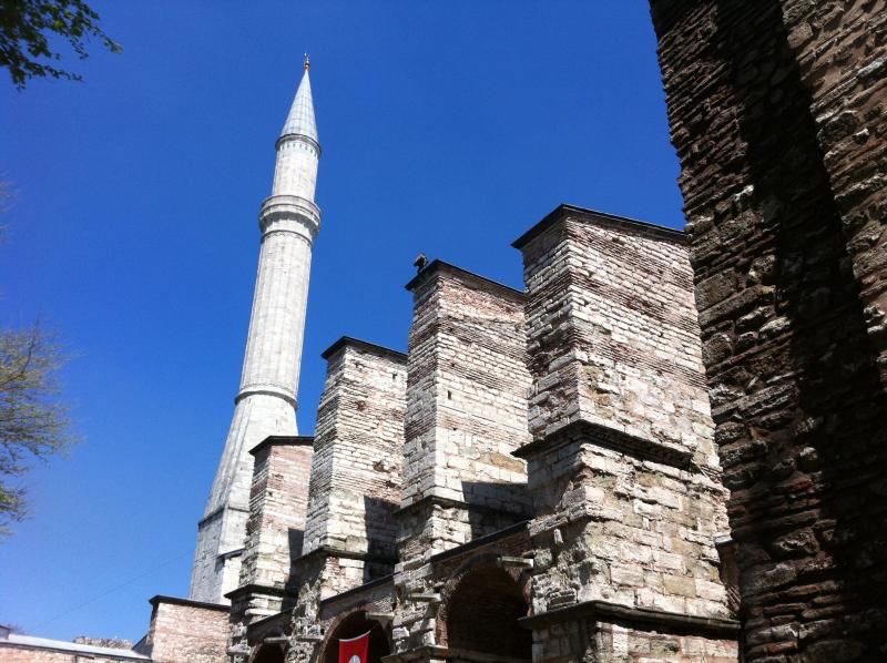 Ayasofya'nın ilk yapıldığıda neye benzediğini tam olarak anlayabilmek için önce Sultanahmet Meydanı'nda durmanız ve yapıyı zihninizde daha sonra eklenen bölümler olmadan canlandırmanız gerek. İşe fetihten sonra eklenen dört minareden başlayın. Sonra önünde sıralanmış olan sultan türbeleriyle devam edin. En son Mimar Sinan tarafından ilave edilen devasa payandaları da çıkarın. Tepeye de hac koyarsanız ilk yapıldığı halini canlandırmış olursunuz.