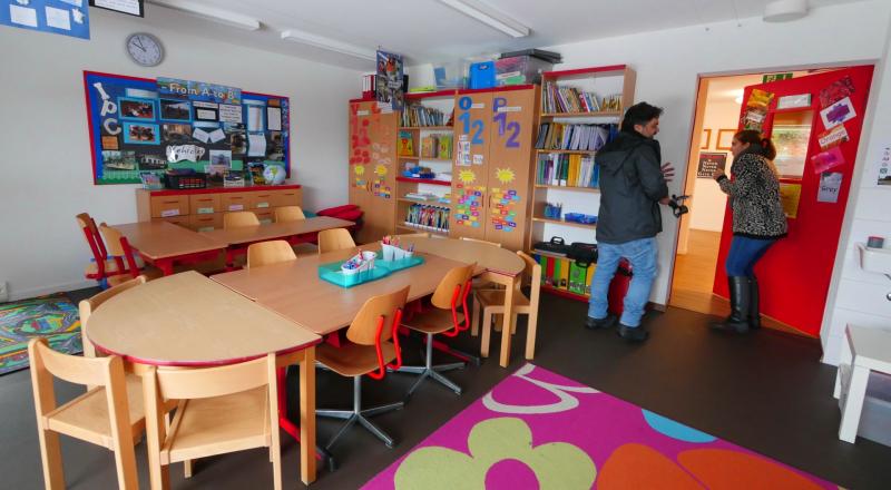 İlk olarak okul sekreteri Stéphanie Méan-Melchior bizi kapıda karşılıyor. Sonra bizi okulun içinde özel bir odaya alıp kahve ve kurabiye ikram ediyor. Okul deyince hep aklımıza büyük betonarme binalar gelir ya, burası çok farklı. Ahşaptan yapılmış şirin büyük bir bina, sıcacık.