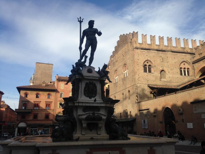 Çeşmenin ön tarafındaki kocaman meydan meşhur Maggiore Meydanı (Piazza Maggiore), İtalya'nın en büyük ve en eski meydanlarından biri olarak biliniyor. Meydanı çevreleyen binaların hemen hepsi tarihi ve önemli binalar ki öncelikle dünyanın en büyük 5. bazilikası olan Basilica di San Petronio ile başlamalıyız.