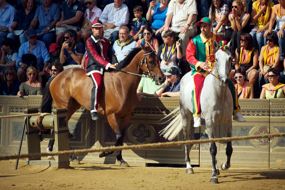 * Asıl yarış günü gelip çattığında Piazza del Campo Meydanı turistler ve Siena halkı ile dolup taşar. İnsanlar tuttukları semte ait bayrakları ellerinde sallar veya boyunlarına o semte ait flamayı geçirirler. Bu yarışta 17 semtin en iyi atları seçilir, bu atlar seçildiği semtin bayrağını temsil ederek yarışı birinci olarak bitirmek için koşar. Jokeyler de temsil ettikleri semte ait bayrağın renklerini içeren kostümler giyerler.* Yarışı kazanan at ve o semte ait bayrak, yarış biter bitmez Siena sokaklarında tur atar. Atın ardında ise insan seli :)