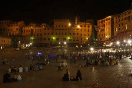 Siena'nın en önemli ve turistik bu meydanı buram buram tarih kokmakta. 13. yy'da açıkhava pazar yeri olarak kullanılmış bu meydan. Bu alana oturup etraftaki tarihi pek çok yapıyı ve şirin İtalyan kafelerini gözlemlemek mümkün ve meydan bir deniz kabuğu gibi hafif eğimli şekilde yapılmış. Etraftaki kafe ve restorantlar meydanın turistik olmasından dolayı bir hayli pahalı.. Gece-gündüz 7/24 bu meydana gelip, kendinizi ortaçağda yaşıyormuş gibi hissedebilirsiniz. Bu meydanın en önemli özelliği her yıl 2 Temmuz ve 16 Ağustos tarihlerinde gerçekleştirilen dünyaca ünlü "Palio Festivali"ne ev sahipliği yapmasıdır. Palio ismi verilen at yarışları bu meydanda başlayıp, Siena'nın o daracık sokaklarında devam etmektedir. Her yıl pek çok turist bu festivali izlemek için Siena'ya akın etmektedir.