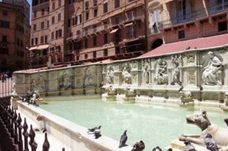 Hikayeye göre 8 yıl süren çalışmaların ardından Piazza del Campo'ya su ancak 1342 yılında gelmiş. Hal böyle olunca Siena halkı bu durumu sevinçle kutlamış ve bir yıl sonra 1343'te Fonte Gaia yani Sevinç Çeşmesi yapılmış. Çeşme gotik ve rönesans mimarisini yansıtır.