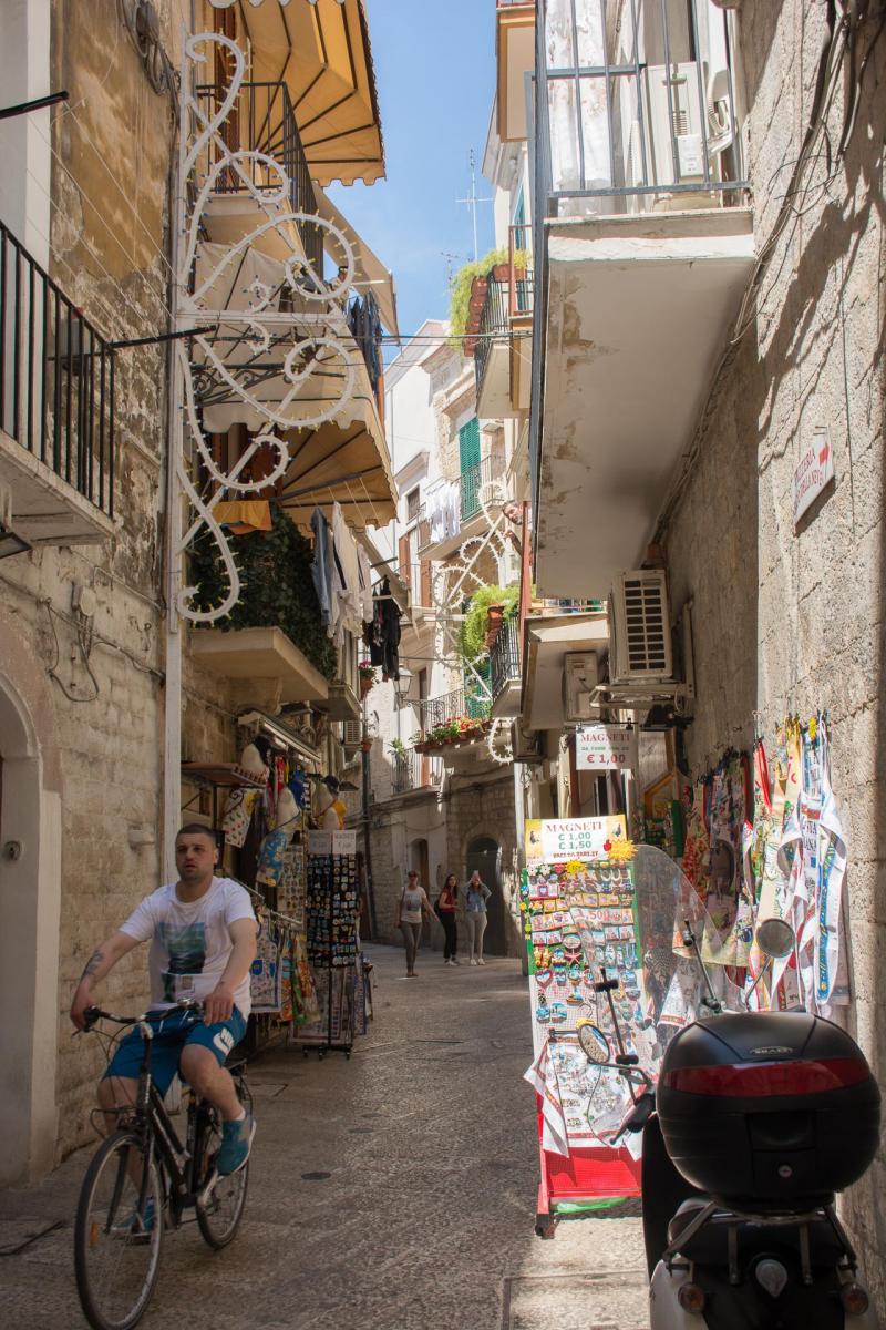Bari, bir liman ve üniversite şehri. Bundan 4 yıl önce motorsiklet ile Marsilya’dan dönerken Bari’den gece vapuru ile Yunanistan’a geçmiştim, o zaman sadece limanı görüp basit bir liman şehrinden öteye gidemeyeceğini düşünmüştüm ama limandan sadece 5 dakika ötede çok güzel bir Old Town’u ve kalesi olduğunu bu gidişimde keşfedebildim.