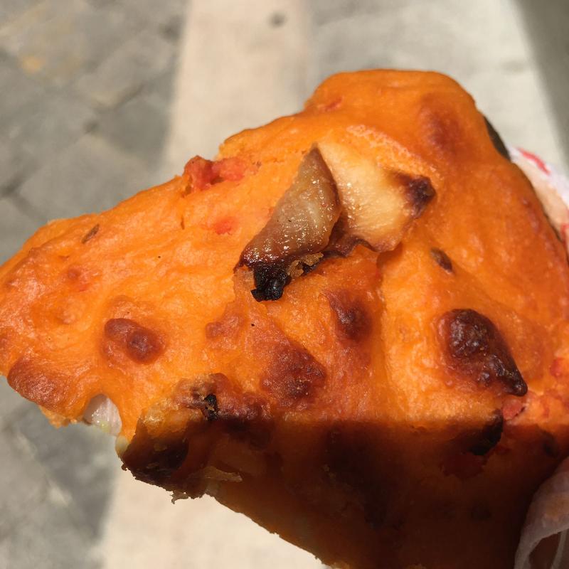 Tam çıkarken dükkanın sahibi bir de acılı, domatesli bir ekmek gösteriyor, aman tanrım yeme de yanında yat. Hemen onu da alıp bir güzel mideye indiriyoruz. Birkaç sokak gittikten sonra dayanamayıp tekrardan geri dönüp, aynı ekmekten biraz daha satın alıyoruz. Bu arada bir yandan da ekmeğin içerisinde olabilecek malzemeleri biraraya getirirsek biz bunu evde pişirebilir miyiz tartışması gırla gidiyor.