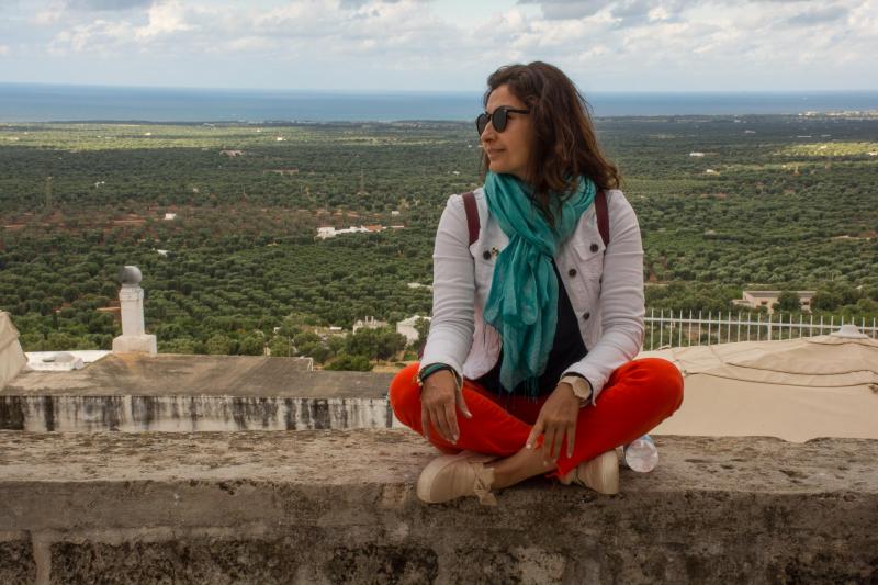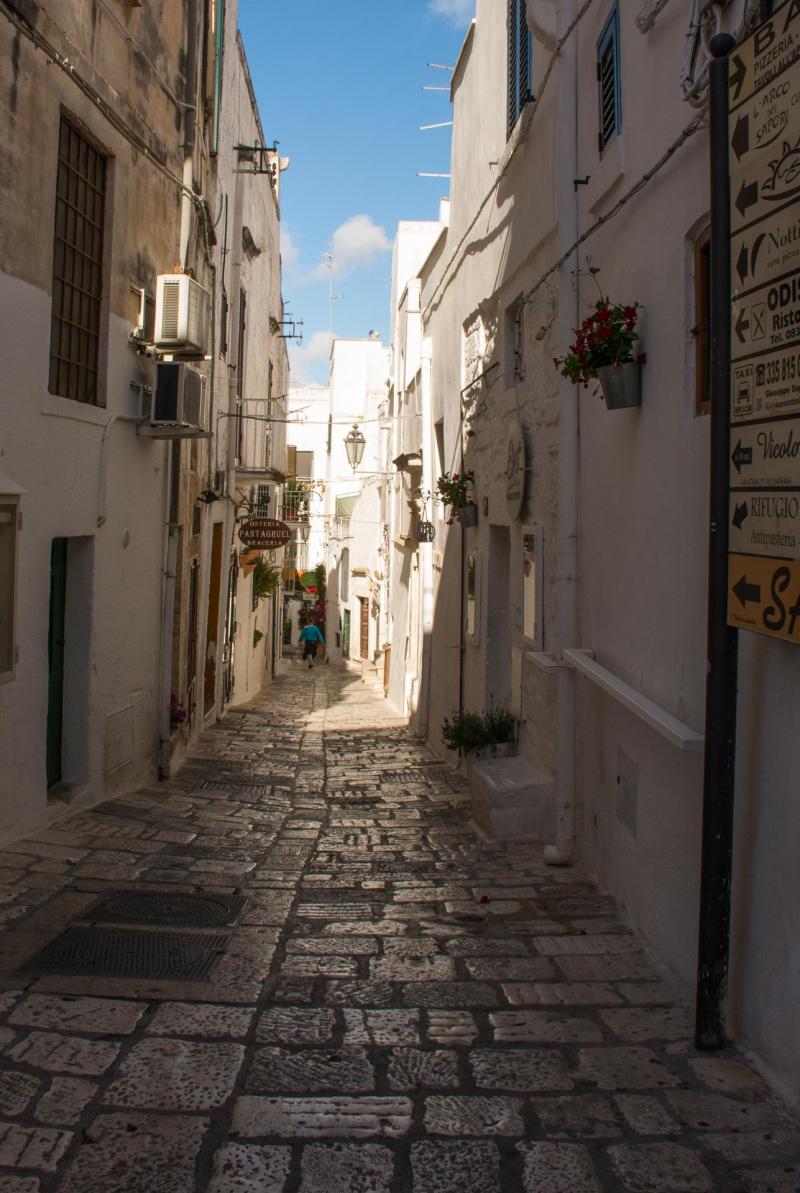 Birbirine dolanıp saçaklanan çiçekler ile dolu olan daracık sokaklar aynı bir labirenti andırıyor. Biz kararsız ve büyülenmiş bir şekilde ara sokaklarda dolaşırken geldiğimiz bir noktada, tepeden hakim olduğumuz toprakların güzelliği ile içimiz tıkanıyor adeta. Şehrin etrafı yemyeşil zeytin ağaçlarının içindeki Masseria denen çiftlik evleri ile dolu. İngilizler burayı keşfedeli 7 yıl olmuş ve birçok ev ve villanın da sahibi olmuşlar. Adamlar haklı valla ne diyeyim…
