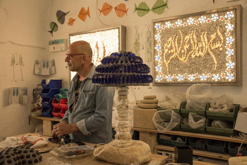 Kapının ilginç şeklinden tanıyınca içeri dalıyoruz. Peppino çok şeker, Ayhan Sicimoğlu’ndan bahsedince ‘Ah o deli adam mı? diyor gülerek sesinde engelleyemediği tatlı bir muziplik ile, belli ki onu çok sevmiş’. Peppino’nun dükkanının muhteşem bir manzarası var, tepeden olduğu gibi plaja hakim, orada da birkaç resim çektikten sonra dükkandan ayrılıyoruz.