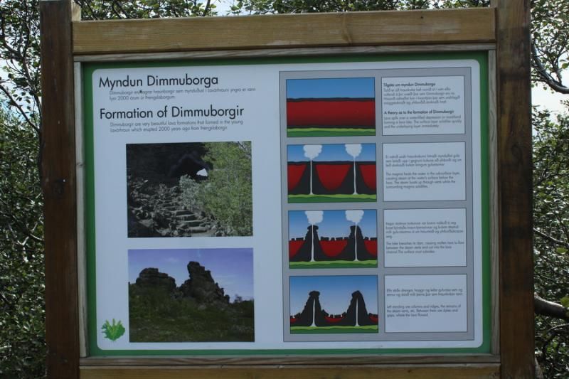 İzlandaca “Dimmu” karanlık, “borgir” ise şehir anlamına geliyor. Buranın adı karanlık şehir. Bundan 2300 sene kadar önce burada ufak bir göl varmış ama altında sürekli kaynayan bir magma olduğu için su zaman içinde buharlaşmaya başlamış. Göl tam olarak buharlaşmadan burada bir patlama olmuş. Dışarıya çıkan lavın sıcaklığı suyu tamamen buharlaştırmış ve sonunda bu yeryüzü şekilleri oluşmuştur.