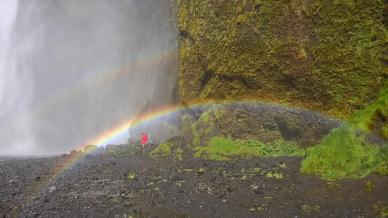 Seljalandsfoss’un 300-400 metre kadar ötesinde, kayaların içerisine gizlenmiş ayrı bir şelale olan Gljufrabui’yi de görmek için, yavaşça kıvrılan akarsuyun kenarından ilerliyoruz. Her yanımız yemyeşil, cennet böyle bir yer olsa gerek. Bu şelale biraz daha içlere gizlenmiş olduğu için, çok kısa bir mesafeyi ıslanmamak için taşların üzerinden seke seke geçmemiz gerekiyor. Burayı da gördükten ve fotoğrafladıktan sonra, yine Seljalandsfoss’un muhteşem manzarası eşliğinde aracımıza dönüyoruz. Bir sonraki durağımız diğer bir muhteşem şelale olan Skógafoss. Yine muhteşem manzaralar eşliğinde ilerleyerek kaynağını Eyjafjallajökull’den alan bu şelaleye varıyoruz. Eyjafjallajökull adını birkaç sene evvel patlayan ve Avrupa hava trafiğini felç eden yanardağdan hatırlayabilirsiniz. Evet aslında oldukça tehlikeli bir ülkedeyiz:)