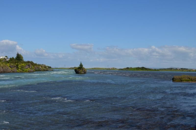 Öncelikle yolumuzun üzerinde nispeten büyükçe bir yerleşim yeri olan Selfoss kasabasına uğruyoruz. Buradaki tek Domino’s Pizza’dan doyurucu pizzalarımızı alıp, nehir kenarında nefis bir manzara eşliğinde afiyetle götürüyoruz:) Aslında Domino’s Pizza gibi hazır pizzacılardan yemek gibi bir adetimiz hiç yoktur ancak İzlanda’da yemek bulmak açıkcası pek kolay değil. Hele ucuz yemek bulmak neredeyse imkansız. O yüzden bu yemek pek bir güzel geliyor bize. Özellikle de böyle güzel bir manzara eşliğinde. Tavsiye edilir:)