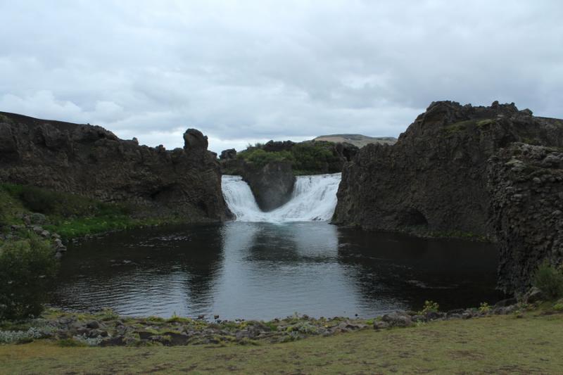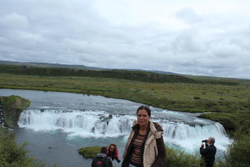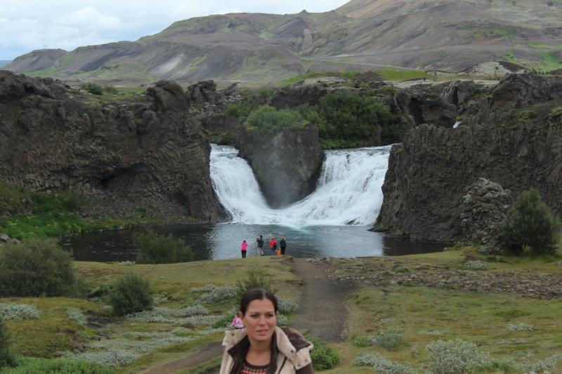 Rotamızdaki diğer durak ise Hjalparfoss Şelalesi. Bu şelale de gerçekten çok etkileyici. Hekla Volkanı’nın lavların arasından iki farklı koldan gelen nehir burada ufacık bir göle dökülüyor.