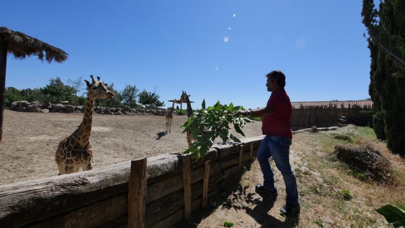 Parktaki bir sonraki ve son durağımız ise Afrika Savanı oluyor. Bu barınak oldukça büyük, tam 18 bin metrekare açık alanı var. Barınağın sakinleri ise zebralar, su aygırları, devekuşları ve zürafalar. İçinde çalılıklar, otlaklar ve açık ağaçlar var. Burada normalde zürafalarla temas etmenize özel izin haricinde müsade edilmiyor. Ama biz bu ayrıcalığımızı kullanıyoruz ve Yonca Hanım’ın ricası üzerine bakıcılar bizi arka taraftaki çitlerin oraya alıyor ve elimize birkaç dal tutturuyorlar. Üzerinde yaprak olan bu dallar zürafalar için bir ziyafet. Çekingenliklerini aşabilenleri yanımıza geliyor ve küçük birer ziyafet çekiyor. Biz de birkaç fotoğraf çektirmeyi ihmal etmiyoruz tabi.
