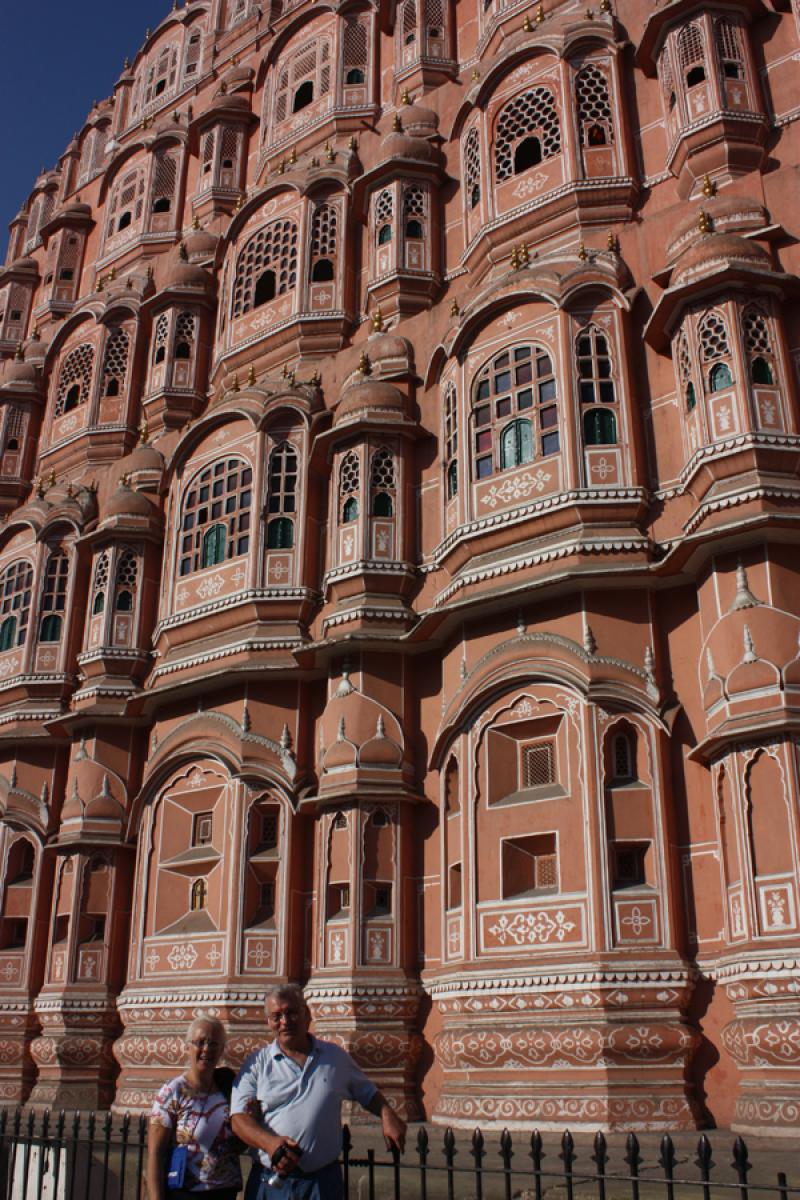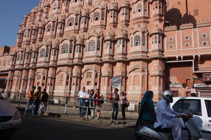 Bir de kent içerisinde çok değişik bir mimariye sahip "Hava Mahal" olarak bilinen Rüzgar Sarayı yer alıyor. Bu saray da pembe renkte. Bu sarayın içini gezmiyoruz ancak rehberimizin söylediğine göre içeride merdiven yokmuş yerine eğimli yollar varmış. Bunun sebebi ise o dönemde sarayda yaşayan kadınların çok ağır takılar taktıkları için üzerlerinde taşıdıkları ağırlıktan rahatlıkla merdiven çıkamamalarıymış. Burayı sadece dışından fotoğraflamakla yetiniyoruz.