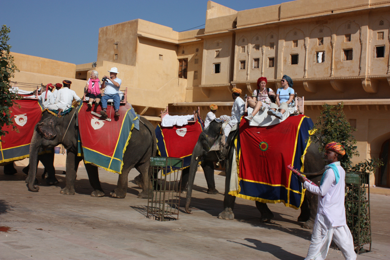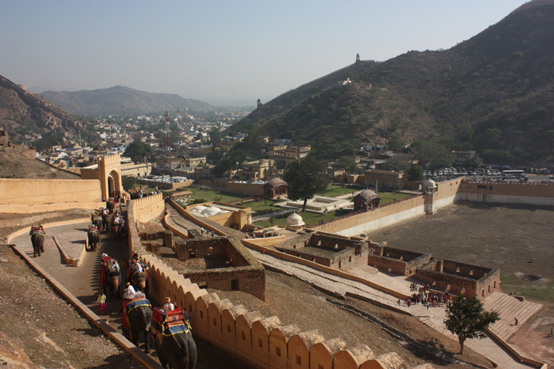 Aşağıdan fillere binerek yukarı çıkılıyor. Fillere binmek için sıra beklerken seyyar satıcılar bizi biraz rahatsız etti. Birinden şapka alırsanız, hemen yanınızda heykel satan bir adam bitiveriyor. Bazen oldukça rahatsız edici olabiliyor gerçekten. Satmaya çalıştığı şapkayı kafanıza geçirip, hemen ardından para talep ediyorlar. Yani “ister misin?” diye soran yok…