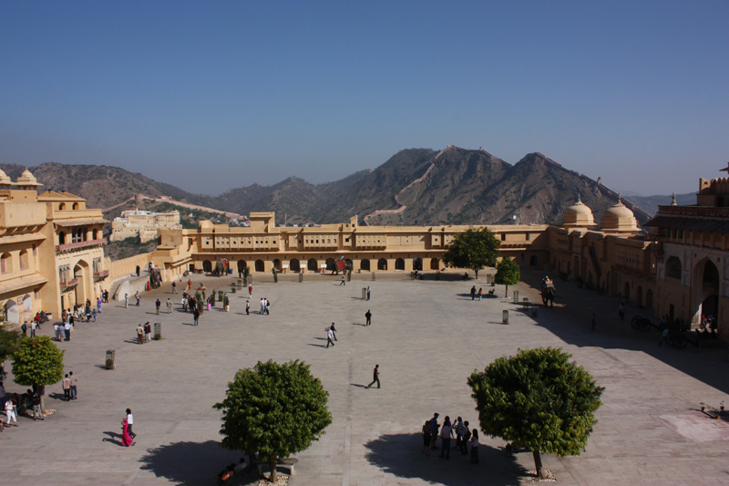 Buradaki duvar dünyanın üçüncü büyük güvenlik duvarıymış. Dünyadaki en büyük güvenlik duvarı Çin’de, ikincisi ise Hindistan’ın Rajastan Bölgesinde bulunuyor. Bu duvar ise Amber Sarayı’nı korumak amacıyla dönemin kralı tarafından yaptırılmış. Uzunluğu tam 18 kilometre. Sadece 3 tane girişi var. Rajastan’daki duvarın uzunluğu 40 km kadar, Çin Seddi'ninki ise açık ara önde, tam 850 km.