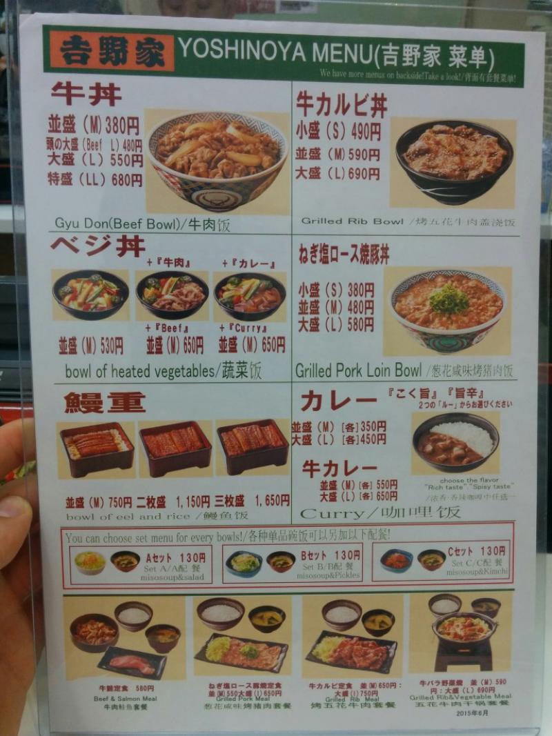 Yılan balığı ve pilav: Çok lezzetli ve doyurucu. Yoshinoya zincirinden yemek izin. Menü ve çeşitler şöyle: