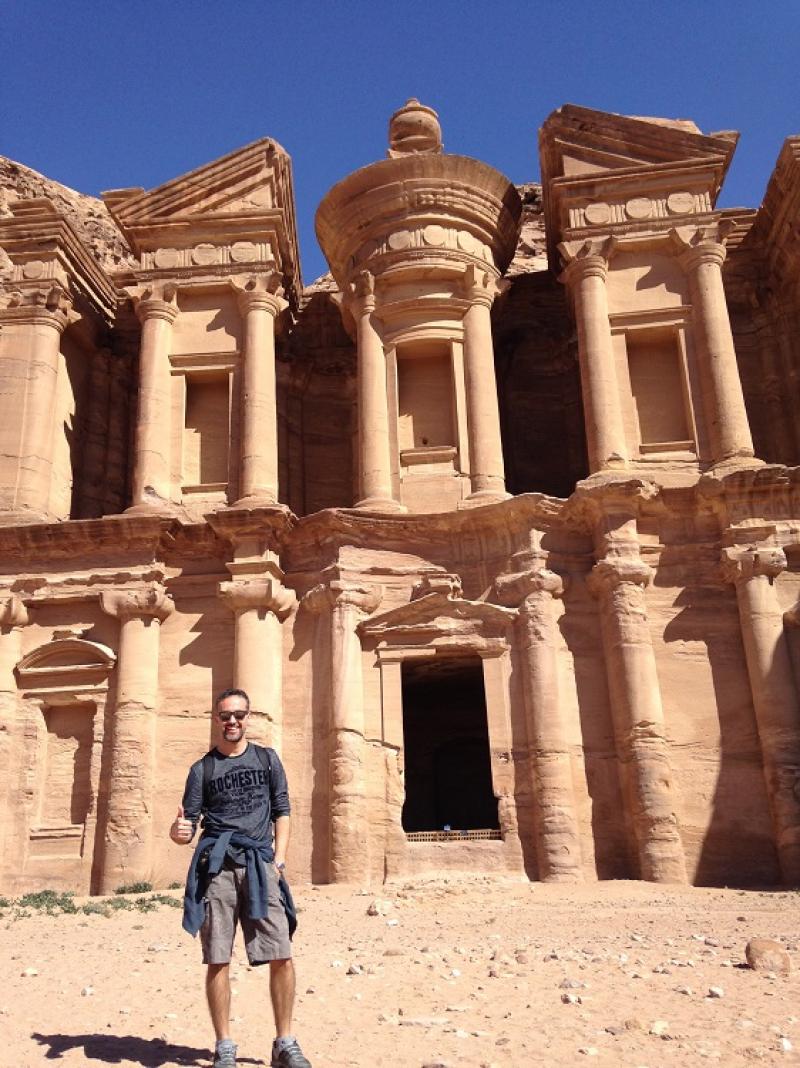 Pazarlık ile adam başı 5 dinara bu zorlu yolu çıkabilirsiniz. Ama biz kondisyonumuza güveniyoruz. Ayrıca 850 basamakla çıkılan bu yolu zavallı hayvanların sırtına binerek çıkmak açıkçası hiç işimize gelmiyor. Ama açıkça söylemeliyim gerçekten Petra’nın en zorlayıcı parkuru burası. Arkadaşım Semih geride kalıyor ben yaklaşık yarım saat kırk dakikalık zorlayıcı bir yolculuktan sonra Ad- Deir (Manastır)’e varıyorum. Burası M.Ö 1. yüzyılda yapılmış ve Nebati Kralı 1. Obodas'a ithaf edilmiş. Bunca yola ve eziyete değer diyorum ve karşısına geçip bu tek parça kayaya oyulmuş muazzam yapıyı inceliyorum. Arkadaşım Semih, nefes nefese ve terlemiş vaziyette bende yirmi dakika sonra yukarı çıkmayı başarıyor. Yukarıda epey oyalanıyoruz. Kendimize geldikten ve fotoğraflarımızı çektikten sonra şimdi iniş yolculuğumuz başlıyor. İnerken Petra’nın nefes kesen fotoğraflarını çekiyoruz.