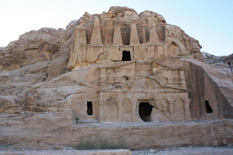Kurban sunağında biraz soluklandıktan sonra yolumuza vadinin aşağı kesimlerine doğru ilerleyerek devam ediyoruz. Vadinin kurumuş nehir yatağından ilerleyip küçük bir tepe aşıyoruz ve karşımızda Bizans döneminden kalma büyük tapınak. Tapınak diğer kaya işçiliği yapılara göre bağımsız bir bina görünümünde olduğundan oldukça yıpranmış ve yıkılmış. Hemen önünde, katır ve eşekler ile sizi bekleyen bedeviler Ad-Deir Manastırı'na götürmek için tur teklif ediyorlar.