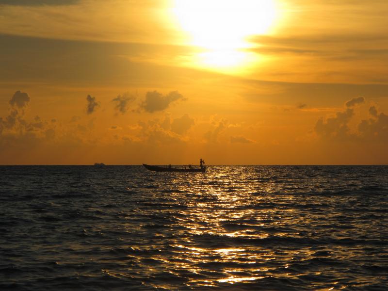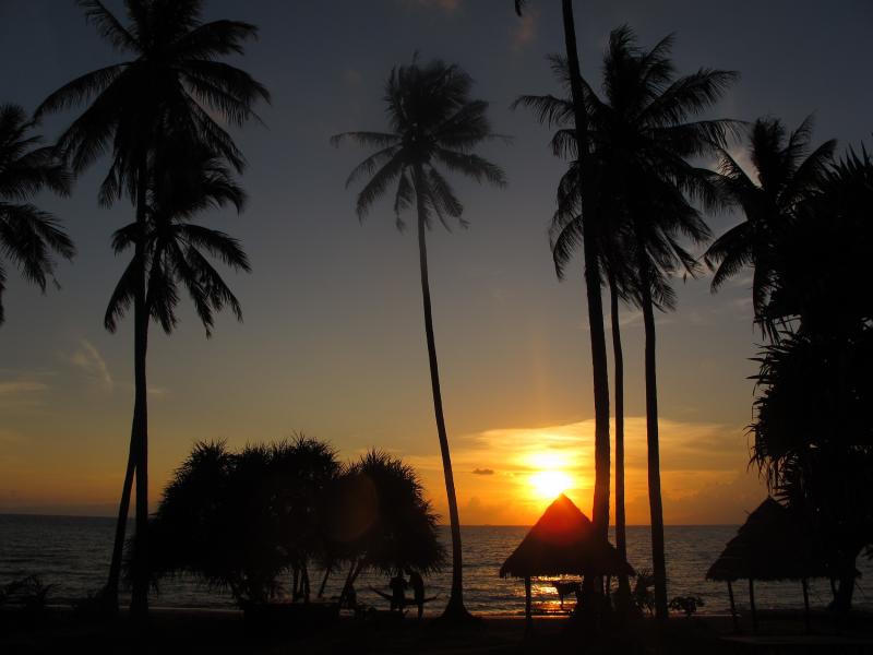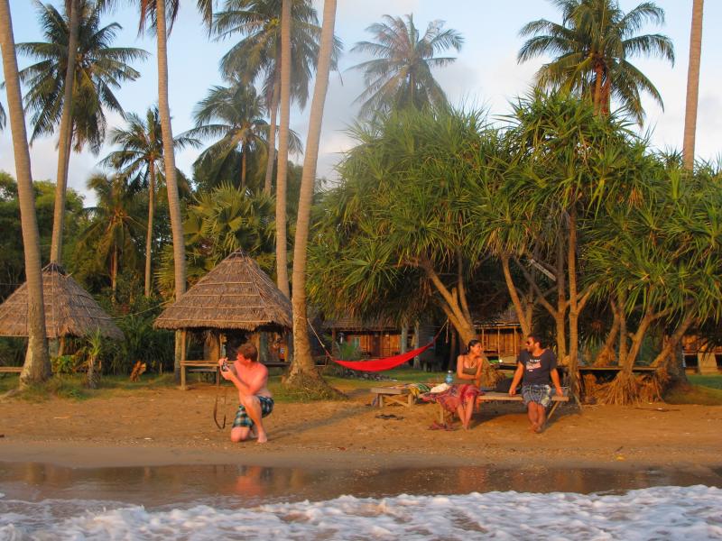 Gündüz her şey harika… Turistlerden uzak, kendi halinde, yeşil bir adacık; bungalovumuzun hemen önünde bembeyaz kumsal; kumsalda hamak ve masaj keyfi; harika bir deniz ve muhteşem günbatımı… Akşam da bungalovumuzun hemen yanındaki küçük restoranda İsviçreli ve İsrailli yeni arkadaşlarımızla lezzetli ve taze deniz ürünleri deniyoruz. Adada gece hayatı yok, saat 21.00′den sonra da sadece 1-2 restoranda elektrik oluyor, onun dışında her yerde ve tabii bungalovlarda ışıklar kesiliyor. Bu yüzden, kafaya takılan tepe lambaları çok pratik oluyor, yanınızda bulundurun derim. Hal böyle olunca, akşam yemeklerini yedikten sonra uyumak üzere odalara çekilmekten başka pek alternatif kalmıyor.