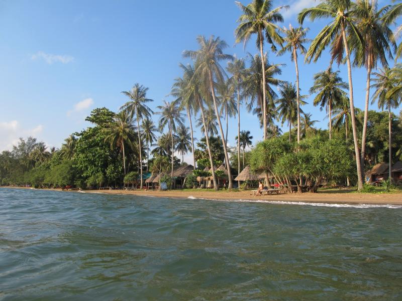 Kep’in iskelesinden bindiğimiz tekne 15-20 dakika içerisinde Tavşan Adası’na ulaşıyor (Gidiş-dönüş kişi başı bilet fiyatı 8 Dolar). Tavşan Adası (Rabbit Island), turistler tarafından yeni yeni keşfedilmeye başlamış. Henüz çok kendi halinde, doğal ve gelişmemiş. Sadece teknelerin sizi getirdiği 1 kilometrelik sahil şeridinde yerleşim ve konaklama imkânları var. Adada 7 tane Kamboçyalı aile yaşıyor ve sahil şeridindeki bungalov gruplarını ve restoranları da bu aileler işletiyorlar. Elektrik kullanımı kısıtlı, akşam saatlerinde 17.00-21.00 arası elektrik var sadece. Sahil şeridi boyunca uzanan bungalov gruplarına fiyat sorup, aralarından en uygun fiyat vereni seçebilirsiniz, hepsi birbirine benziyor zaten. Teknede tanıştığımız İsviçreli ve İsrailli iki sırtçantalı ile ortak hareket edip, grup indirimi alıyoruz bungalovlardan birinden ve geceliği 7 Dolara bir bungalov kiralıyoruz. Lüks ve aşırı hijyen arayışı olanlara, gece bu adada kalmayı önermiyorum, günübirlik de ziyaret edilebilir. Bungalovların hepsi çok basit inşa edilmiş, çatılardan, bambu duvarlardan içeri her türlü böcek, kertenkele vs. girebiliyor. Duş ve tuvalet ise küçük bir kabin ve yerde bir delikten ibaret. Ama bu tarz ıssız, keşfedilmemiş ada hayatını, doğal yaşamı sevenler için paha biçilmez bir yer burası.