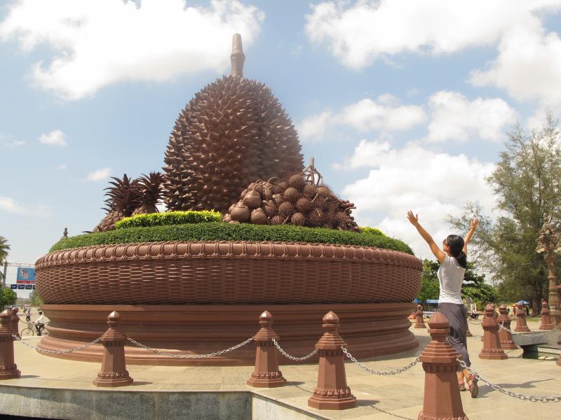 Ve üçüncü sürpriz: Şehrin tam ortasındaki kocaman Durian Heykeli! Kamboçya’nın bu güney şeridi, durian üretiminde dünya sıralamasında en üstlerde. Hatta durian, bazı bölgelerin sembolü haline gelmiş. Bunlardan biri de Kampot olmalı ki şehir meydanına heykelini bile dikmişler. Ben hep diyordum zaten, meyvelerin kralı…