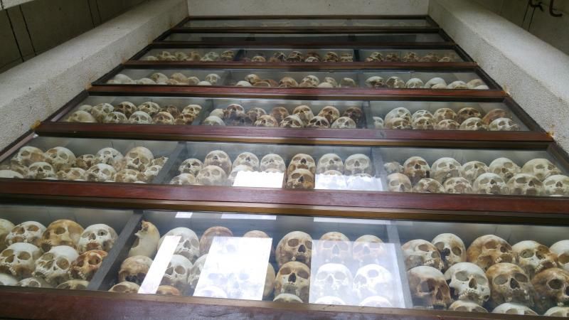 Burası Khmer Rouge - Kızıl Kımerlerin lideri Pol-Pot’un binlerce insanı deyim yerindeyse boğazladığı, merkeze 15 km uzaklıktaki bir alan. Boğazlamak tabirini kullanıyorum, çünkü kurşun ulaşılması zor ve pahalı olduğundan insanları katletmek için genellikle bıçak, pala ve künt cisimler kullanılmış. Burada yaşananlara şahit olup kurtulanların hikayelerini dinleyince bu yüzyılda bu tarz şeylerin nasıl olupta yaşandığına hayret ediyor, bir insanın diğer insana neler yapabileceğini görüyor, acaba bugün bizi koruyan, ya da tekrar yaşanmayacağının garantisi ne diye sormadan edemiyorsunuz?