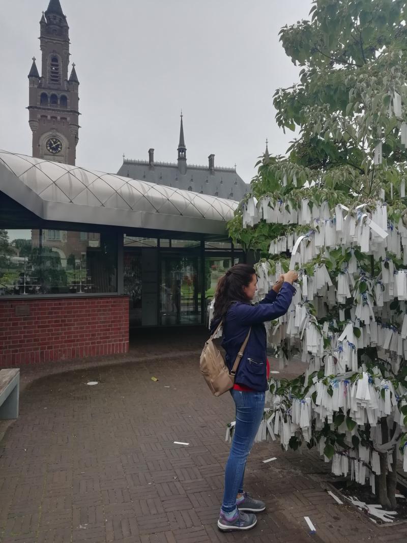Parlamento binasından sonra Uluslararası Adalet Divanı’nı görmeye gidiyoruz. Tek başınıza içeriye giremiyorsunuz fakat rehberler eşliğinde gezebilirsiniz. Yapı dışarıdan oldukça rahat bir şekilde görülüyor; bu sebeple bazı insanlar sadece önünde fotoğraf çektirmeyi tercih ediyorlar. Girişinde bir barış ağacı bulunuyor. Ayrıca içerisinde hâkimlerin kıyafetlerinin, fotoğraflarının ve bazı eski anlaşmaların yer aldığı küçük bir müzesi var. Aynı zamanda bir kısmında hediyelik eşya da satılıyor. Buradan kâğıt alıp üzerinize isminizi yazıp ağaca asabilirsiniz. Barış ağacının biraz ilerisinde ise dünya barışını temsilen 2002 yılından beri yanan ateş ve ülkelerden getirilen taşlar mevcut.