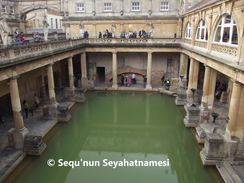 2) Roman Baths: Yaklaşık 2000 yıl önce Romalılar tarafından kurulan Roman Baths, Bath şehrindeki yapılacak aktivitelerden ilki ve en önemlisi. Zaten buraya geliş amacımız da bu hamamları görmek. 12. yüzyılda yapılan King’s Bath bölümüne her gün 46 derece sıcaklıkta, 1.170.000 litre sıcak kaynak suyu aşağıdan yukarıya doğru fokurduyor. Roman Baths için giriş ücreti 13,50 pound. Ücretsiz audio guide alınabiliyor.