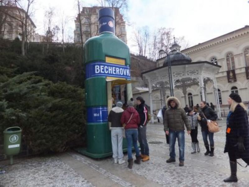 Karlovy Vary’nin kaplıcasından başka Jean Becherovka adlı bir vatandaşın ürettiği Becherovka denilen bir içkisi de meşhur. Hesapta, kaplıca sularının tuzlu ve tuhaf tadını unutturmak için yapmış bu içkiyi ama tarçınlı bir likör bu. Rehberden öğrendiğimize göre yerel halk mutlaka evinde ağrıya sızıya karşı bu içkiden bulundururmuş. Tabii biz de merak edip evimize aldık