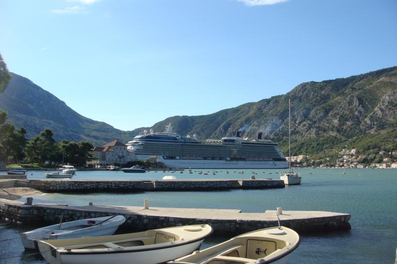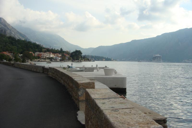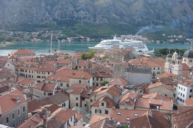Odamıza yerleştikten sonra, önce yorgunluk kahvemizi içiyor sonra da şehre giden yaklaşık 3 km'lik manzarası muhteşem yolda yürümeye karar veriyoruz. Tam da gün batımına denk geldiği için, yürüyüş boyunca bize eşlik eden deniz, gerçek bir göl gibi görünüyor gözümüze. Şehre yaklaştığımızda limana demirlemiş "cruise" gemilerini görüyoruz. Genelde bu gemiler sabah gelip, gün içinde şehirde kaldıktan sonra akşam başka limanlara doğru yol alıyorlar. İlk gecemizde İtalyan yemeği yiyoruz. Kotor, aslında Dubrovnik’in biraz daha küçüğü, etrafı kale surlarıyla çevrelenmiş bir şehir.