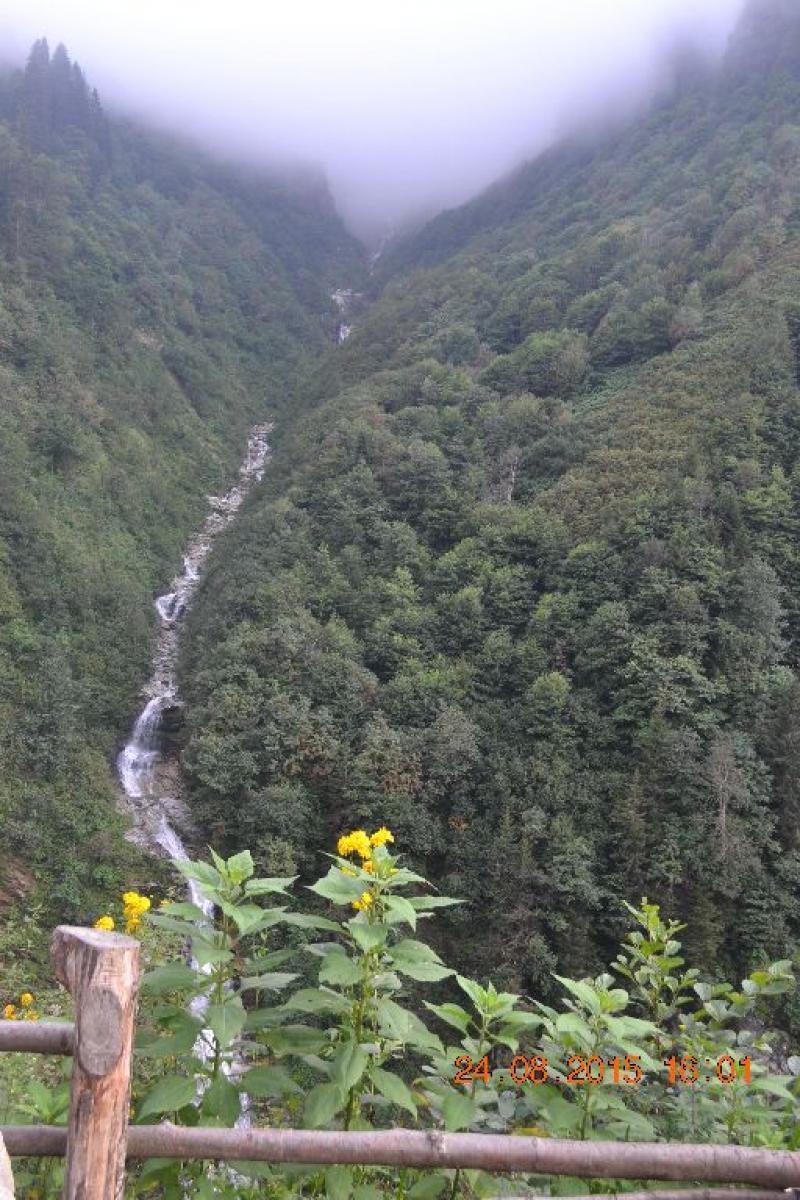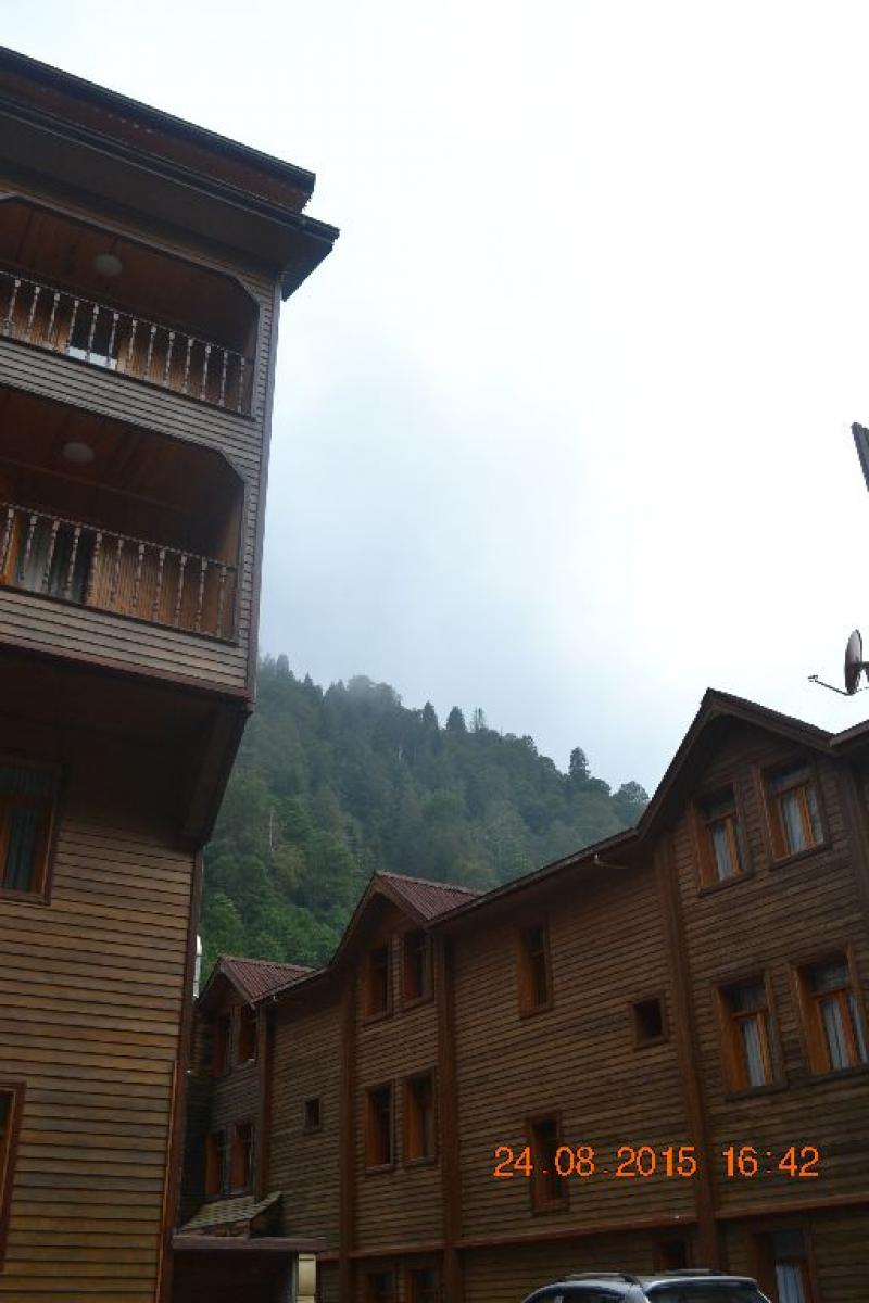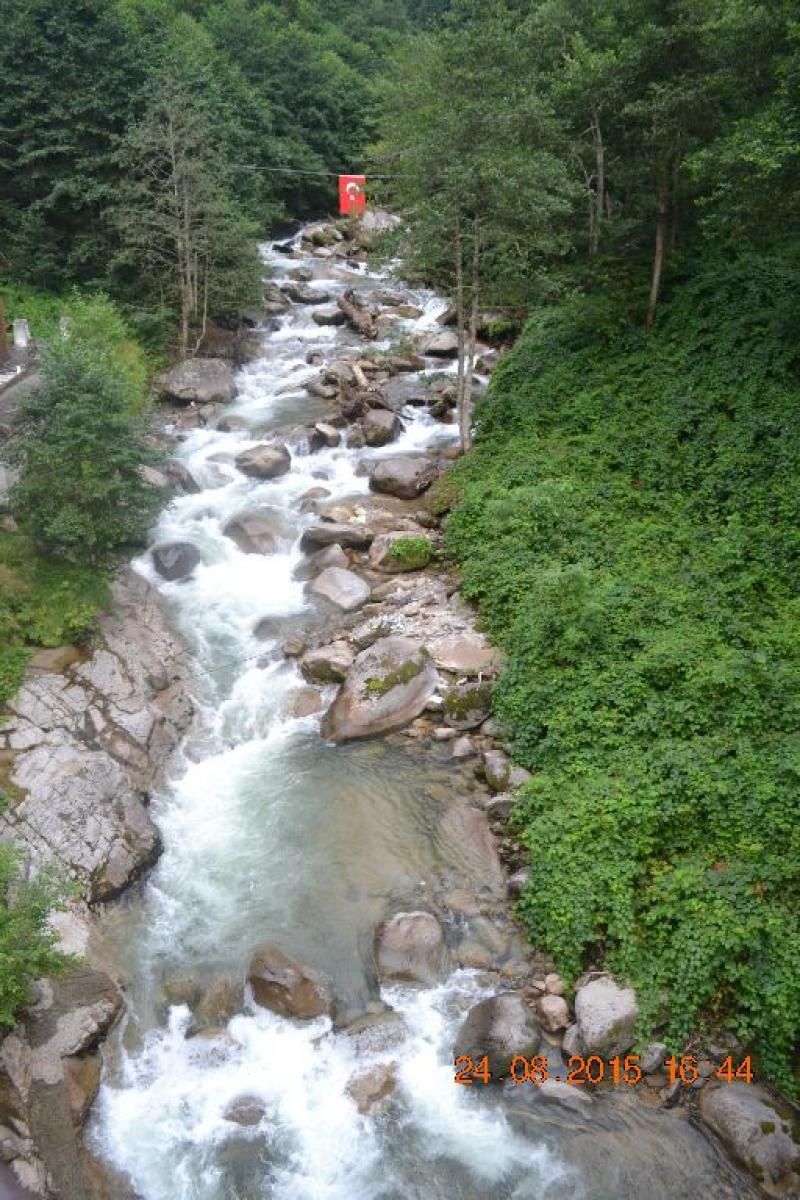 Otelimize ulaşmak için köy meydanındaki köprünün altından geçerek karşı dağların eteklerine doğru yine minik de olsa bir derenin kenarından keyifle yürüyoruz. Bölgedeki birçok pansiyon ve oteller sanırım bu bölgede. Yayla civarında ve karşısında yayla evleri, bungalovlar, pansiyonlar olsa da sessizliği nedeniyle bu bölgede kaldığımız için memnunum. Ahşap otelimiz çevreye uyumlu. Arka taraftaki terasa çıkarken duyduğum uğultu beni yanıltmıyor, Fırtına Deresi'nin kenarındayız ve hem terastan hem de ön odalardan duyulan bu gürül gürül çağlayan suyun sesi eşliğinde çevrenin eşsiz güzelliklerini izlemek bambaşka bir keyifti (ses nedeniyle herkes belki mutlu olmaz ya da uyuyamayabilir elbette ama ben bayıldım).