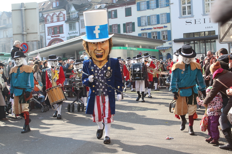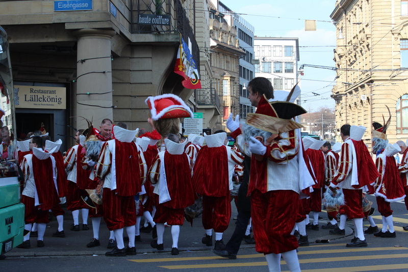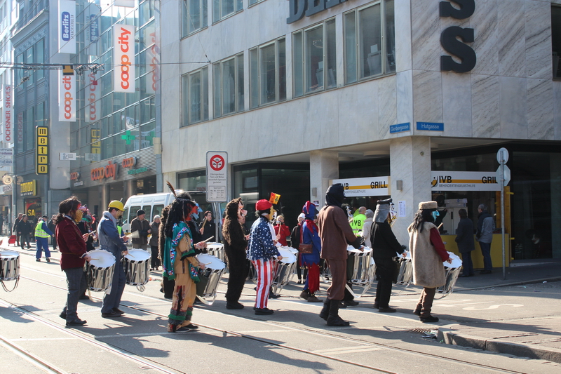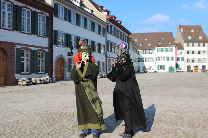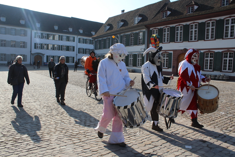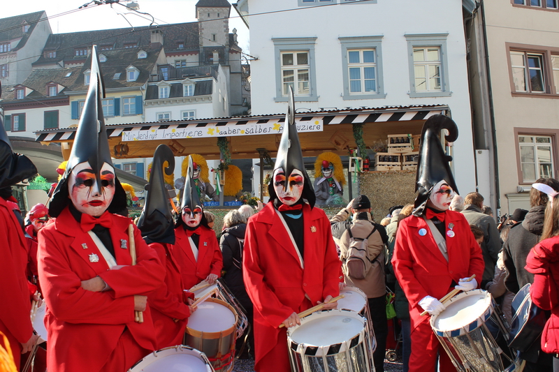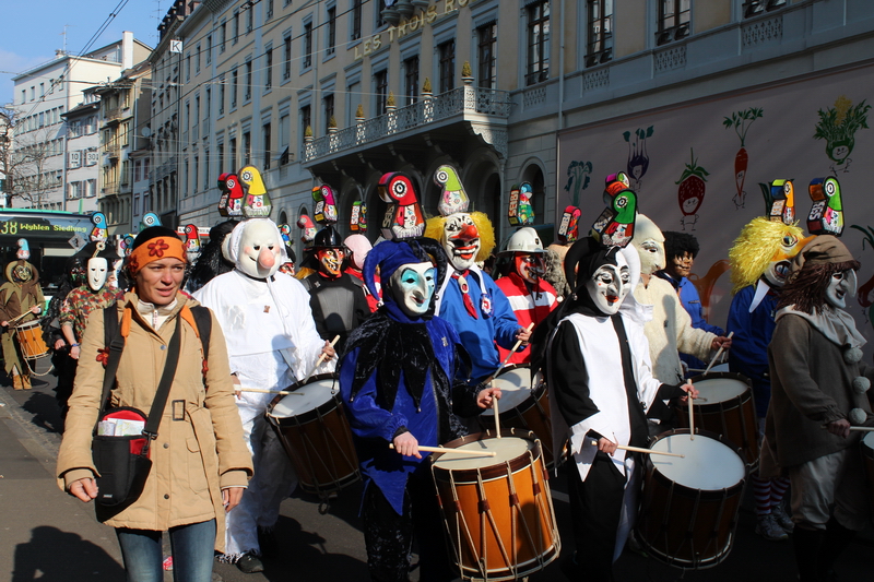 Biz festivalin ilk gününde Basel’deyiz. Festivalin en dikkat çekici özellikleri maskeler, fifreler, sıradışı kostümler ve çalınan davul benzeri müzik aletleri. Çok renkli bir görüntü. Tüm gruplar geçit töreninden önce bazı restoranlara girip kendi aralarında eğleniyorlar.