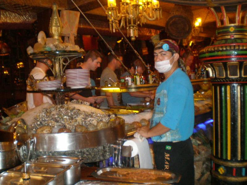Ünlü Brezilya restoranlarını da anlatmadan geçemeyeceğim. Etleri Arjantin kadar ünlü, bu et restoranlarında size sonsuz et seçenekleri sunuluyor. Masadaki her kişiye verilen bir tarafı kırmızı, bir tarafı yeşil kartın kırmızı tarafını çevirene kadar et getiriyorlar; gerçekten lokum gibi etler. Biz resepsiyonistin tavsiyesi ile bu restoranın bir de deniz mahsulü versiyonu olan ve şehrin en ünlü, en pahalı restoranına gittik. Pahalı, ancak girişte sizi kırmızı halı ile karşılamaları, servis, enteresan dekorasyonundan sonsuz deniz mahsulü ürünlere kadar her şey gerçekten mükemmel ve fiyatı hak ediyor (Marius Rest. Copacabana - Fix 150 USD + içki). Gitme zamanı, bu şehirde bir gün daha kalırsak geziyi tamamlayamayacağız korkarım…