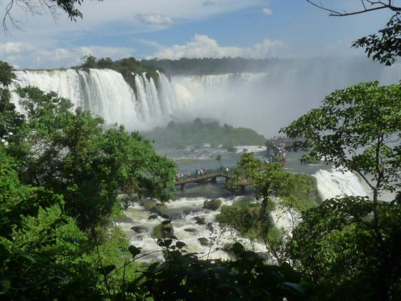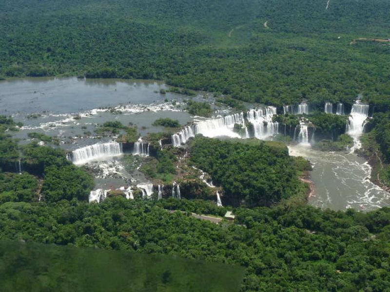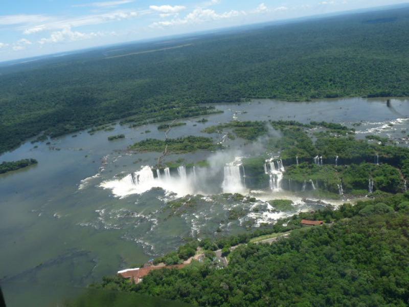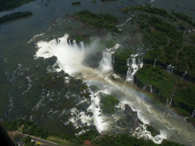 Bugün yine heyecanlı bir gün başlıyor. Yıllardır duyduğum, fotoğraflardan gördüğüm Iguasu Şelaleleri ve Milli Parkı’na gidiyoruz. Iguassu Milli Parkı, 1986 yılında UNESCO Dünya Mirası Listesi’ne alınmış. Arzu edenlerin öncelikle bir helikopter turu almaları için mola veriyoruz. Şelalenin büyüklüğünü ve konumunu görme açısından bu turu aldığım için çok isabetli bir karar vermiş olduğuma seviniyorum, fotoğraflara bakarsanız bana hak vereceksiniz. Bu muhteşem şelale; yarım daire şeklinde, 2.700 metre çapında, suyun en yüksek düştüğü nokta ise 80 metre ve Arjantin ve Brezilya sınır hattında yer alıyor. Etrafındaki tropikal yağmur ormanları; 2000 çeşit tohumlu bitki, 400 çeşit kuş türü ve çok çeşitli vahşi hayvanları da barındırmakta.