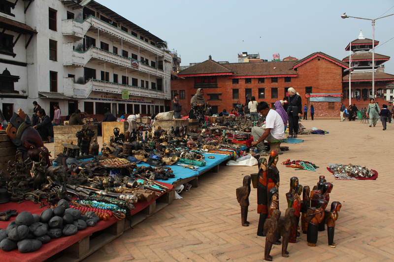 Ertesi sabah uçak saatimize kadar olan vaktimizi Kathmandu Durbar Meydanı’na (Hanuman Doka Durbar) giderek değerlendirmeye karar verdik. Burası eski şehrin kalbi olarak tanımlanıyor. 12. Yüzyıl ila 18. Yüzyıldan kalma binalar, bu binalardaki dantel gibi ahşap oymalar görülmeye değer.