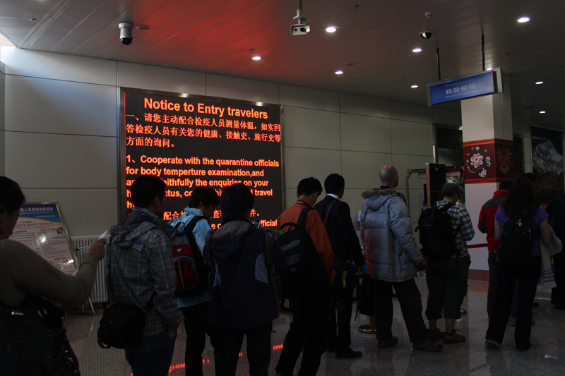 Muhteşem bir yolculuğun ardından Lhasa Havaalanı’na iniş yaptık. Havalanına indiğinizde karşınızda büyük bir dijital ekran göreceksiniz. Bu digital ekranda, yükseklik nedeni ile oluşabilecek bazı problemlere ilişkin alınması gereken önlemler listesi akıyor.