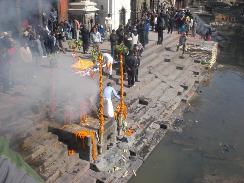 Bizim için oldukça ilginç gelen tören, Nepal'liler için her gün yaşanan sıradan bir olay. Kanal şeklinde düzenlenmiş olan Ganj nehrinin bir kolu olan Bagmati nehrinin kıyısında ölü yakma yerleri ve dışında da toplanarak dua ettikleri yerler bulunmakta.