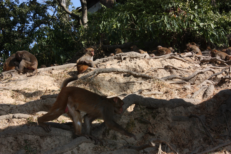 Bu tepede sadece stupa ve Hint tapınağı yok, yüzlerce sayıda bu stupa ve Hint Tapınağının ufak replikaları yer alıyor. Bir çoğunun tepesinde ise maymunlar dolaşıyor.